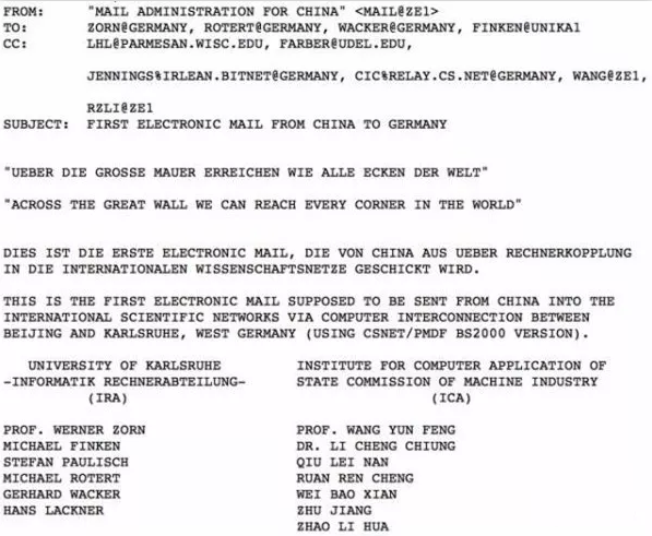 1987年9月20日,中国向世界发出第①封电子邮件:“Across the Great Wall we can reach every corner in the world”(“越过长城,走向世界”)。这是世界第①次通过互联网听到中国的声音。正是从这封邮件开始,中国互联网走向了世界,而谁也没想到的是,在30年后,世界正向中国走来。