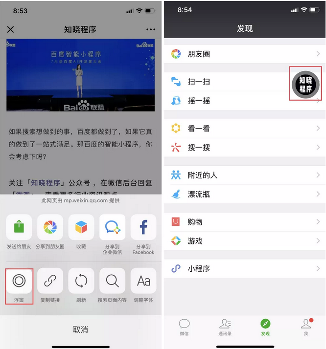 微信内页面都能使用「浮窗」