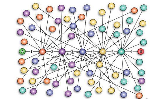 事实上,有时,我们只要两三层关系就够了。例如,你乘飞机到世界任何一个地方,顶多转机两三次,就会到达目的地。我们经常有这样的切身感受,新朋友之间谈起第③个人,忽然意外发现,那个人居然同时既是你的熟人,也是我的熟人。这时我们都会说,这个世界真小呀。1967年,美国社会心理学家斯坦利·米格拉姆做了一个有名的实验,想要证明如下的假说:看来很庞大的由相识关系构成的社会网络系统,在某种意义上说是很小的,人们通过很少的几层朋友关系就可以找到任何一个人。这被称为小世界问题。米格拉姆设计了一个游戏,他随机找来几百个人,要他们帮忙转信给马萨诸塞州某个地区的一个股票经纪人。游戏规则是这样的:发信人发给自己熟悉的、知道名字的人。在信件转到这位股票经纪人手上时,中间经手的人数接近于6。1990年有人重新进行了这项实验,结果还是一样。于是六度分隔的说法由此兴起。其实这是一个简单的数学问题。假设每个人有100位朋友,第①层关系就是100,100个人各向自己的100个朋友发信,第②层关系就是1万人,第③层100万人,第④层1亿人,第⑤层100亿人,去掉重复,到第⑥层,地球上的人就差不多被穷尽了。