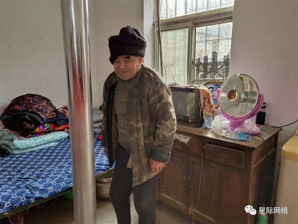村里给他的房间安装了顶棚,提供了暖烘烘的炭炉,还装上了数字电视,床上是干净的被褥,八十多的老人,看上去还有点发福。如今在政府的扶持下,在村干部的用心帮助下,他终于摆脱了之前吃冷饭、穿不暖、寝不眠的日子,从心底为他高兴。也真心祝愿老人可以有一个幸福的晚年生活。