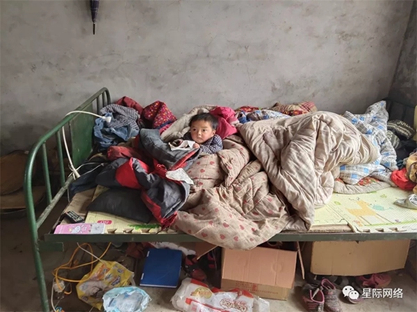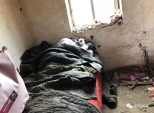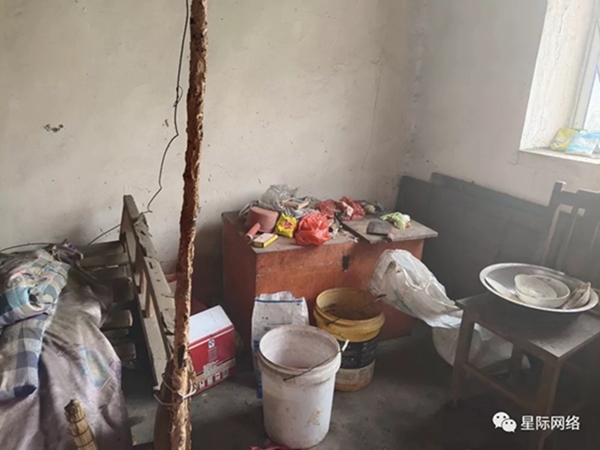 就是远处山坡上的那件小房子里,两年前当我们踏进房间,里面已然不能用一片狼藉四个字可以形容,布满灰尘凹凸不平的矮木桌上,是半碗用水泡过的煎饼,角落里破烂流丢,没有取暖的炭炉,甚至床上的被子和褥子都破旧到不忍直视...