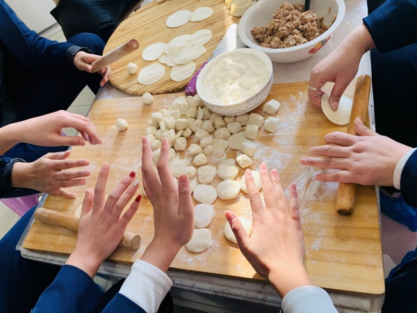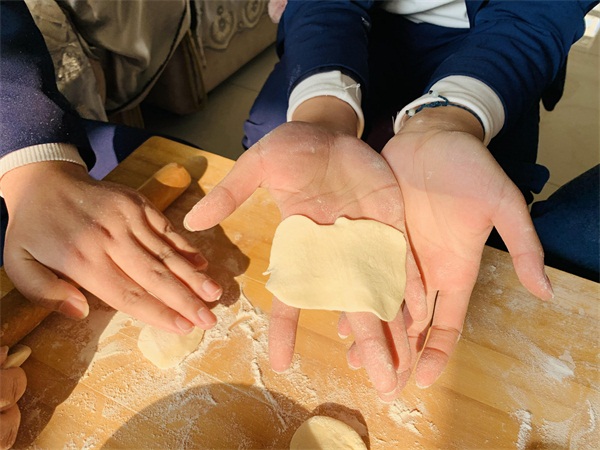 香喷喷的饺子馅,软软糯糯的面团,盖垫、擀面杖,家伙什的全都准备好,我们要开动咯!